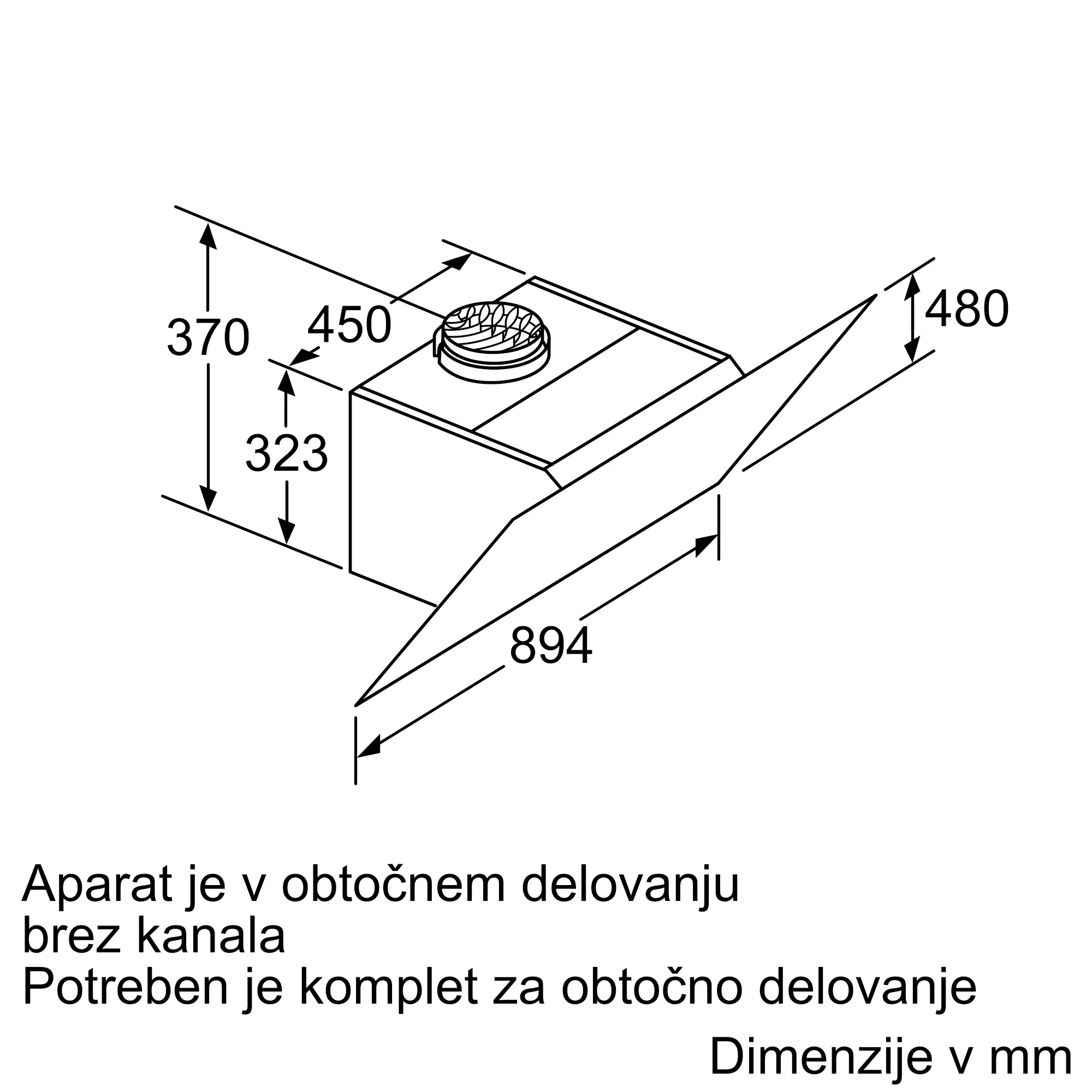 Izpuh/Recirkulacija (Dodatek je na voljo posebej)