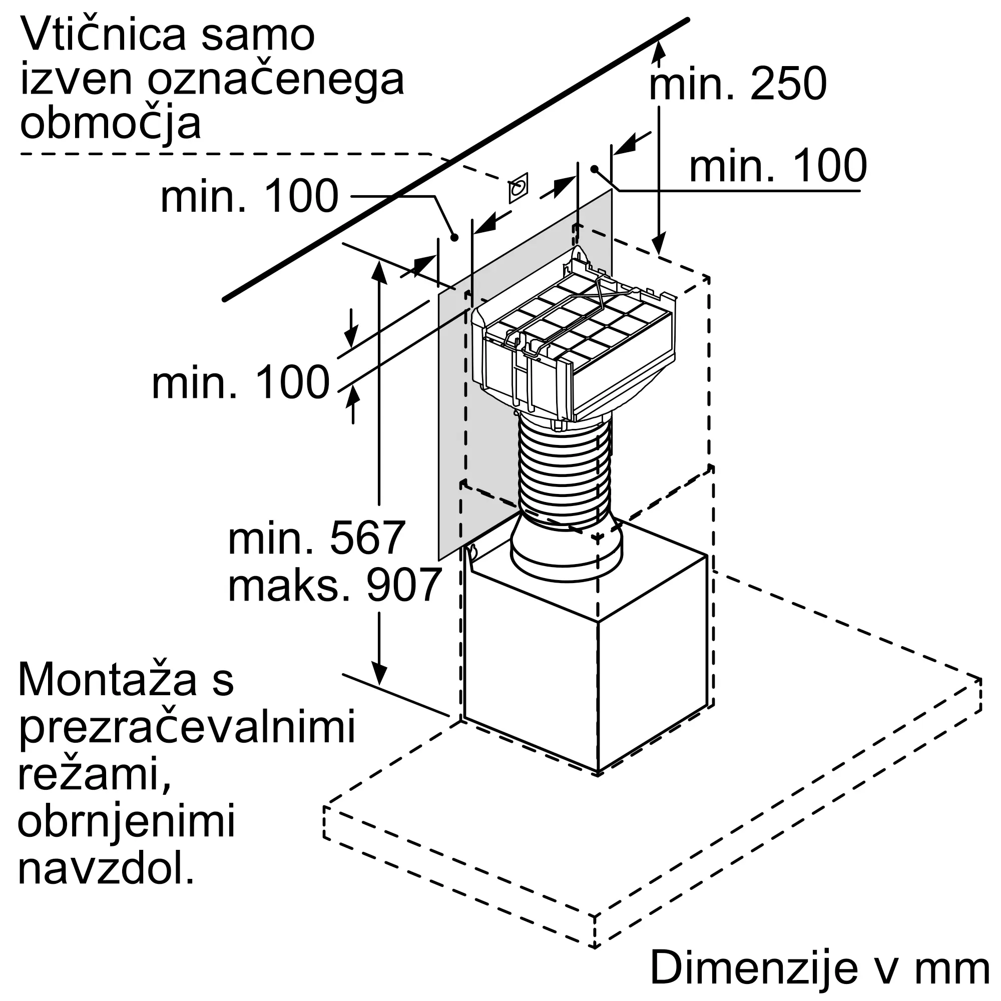 Vključuje regenerativni aktivni ogleni filter CleanAir, držalo za filter, prilagodljivo cev, 2 objemki in montažni material