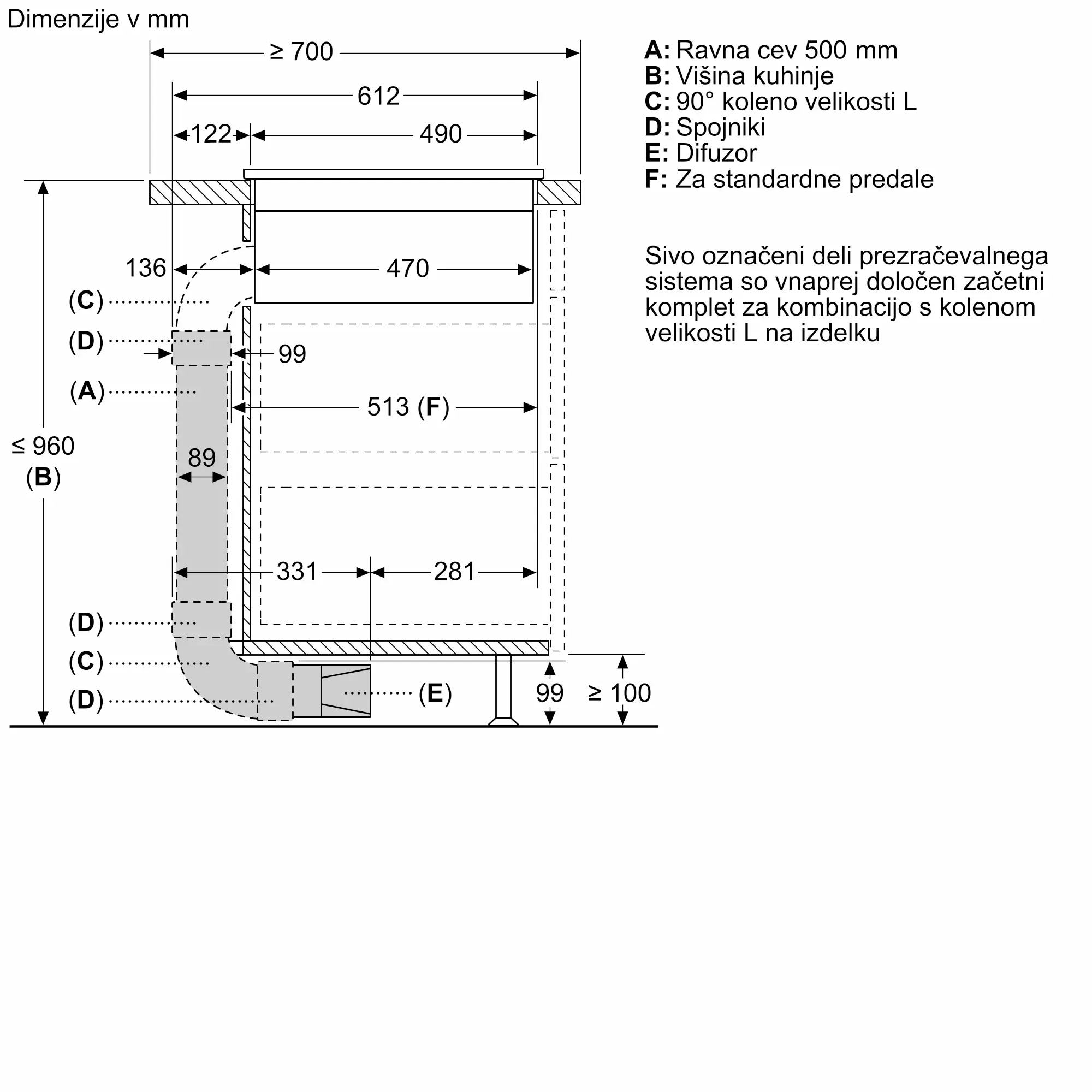 Elementi omogočajo namestitev v delovnih površinah do 960 mm višine.