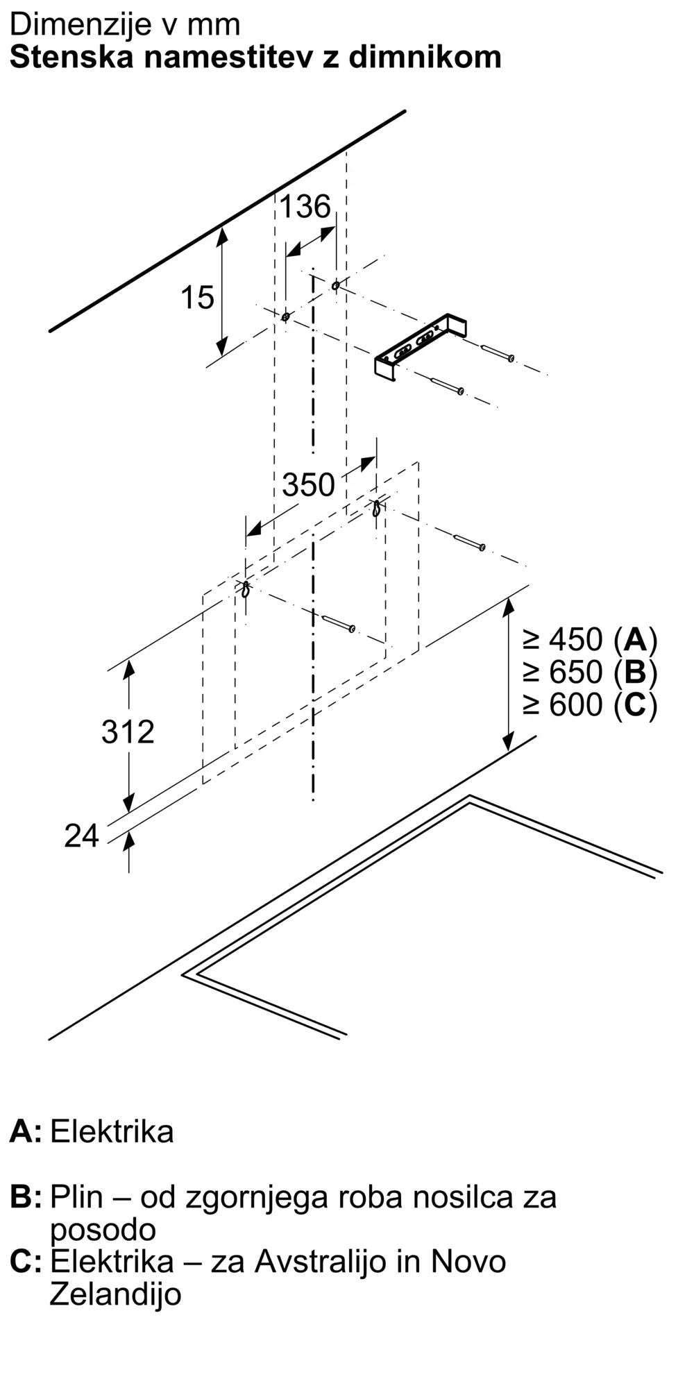Upravljanje nape prek kuhalne plošče